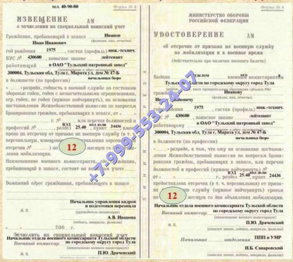 Наша компания предлагает купить в Сегеже удостоверение об отсрочке на военную службу на максимально выгодных условиях для клиента. Документы легальные, использованы бланки государственного образца.